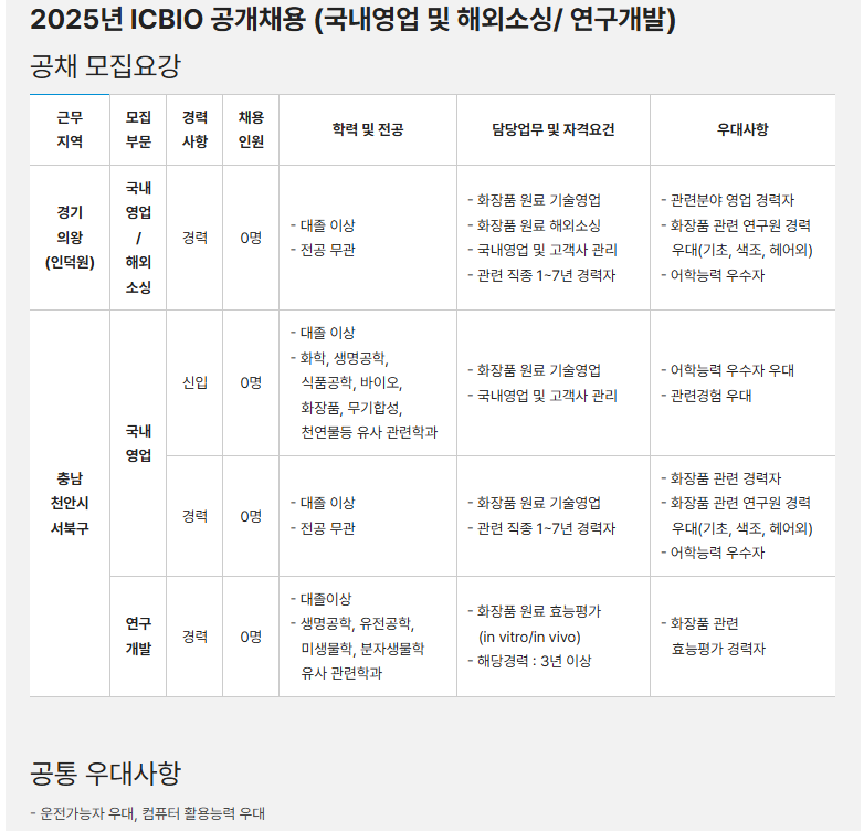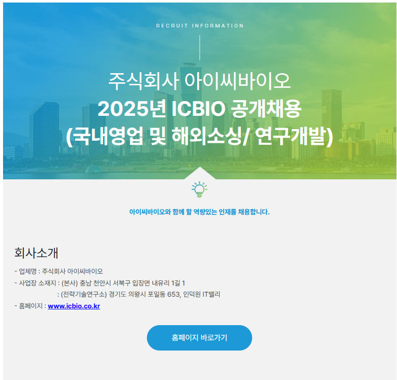 2025년 ICBIO 하반기 공개채용 (국내영업 및 해외소싱/연구개발)